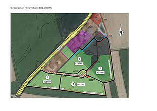 | Widmung: | Die 4 Parzellen werden bei der Straßensanierung der B156 voll erschlossen (vorauss. 2027) |